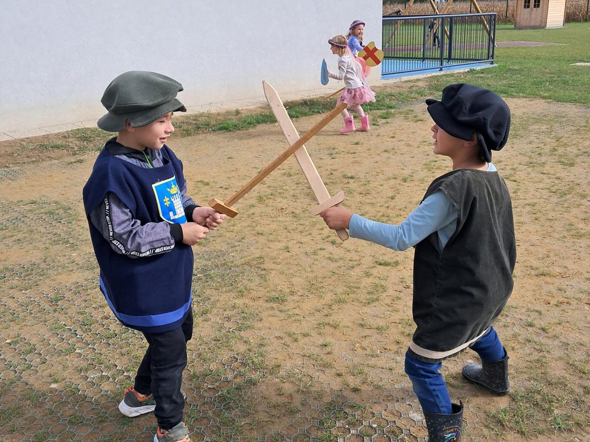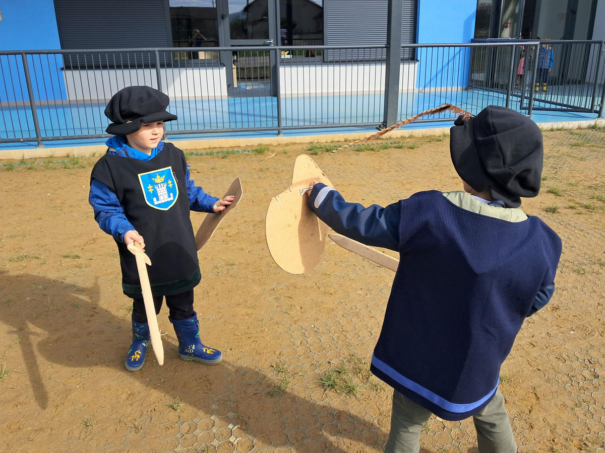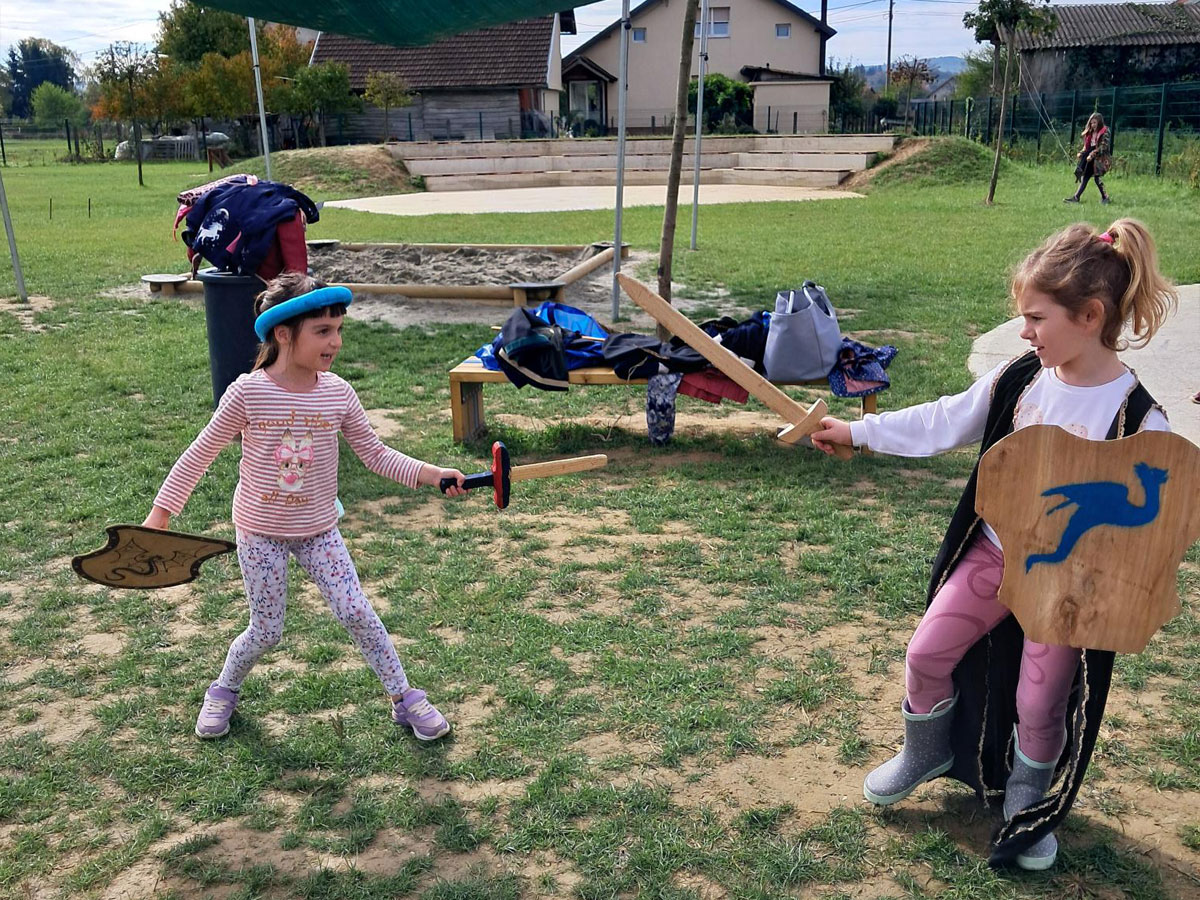 Igra vitezova i dama u kostimima uz borbu drvenim mačevima djeci je bila vrlo privlačna i zanimljiva. Zahvaljujemo DND-u, Jadranki i Mariji što su nam upriličile veseo i zanimljiv boravak na zraku.
