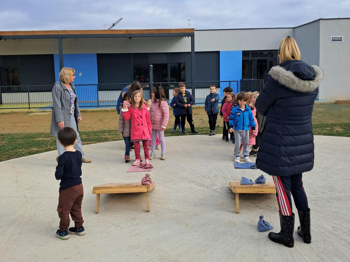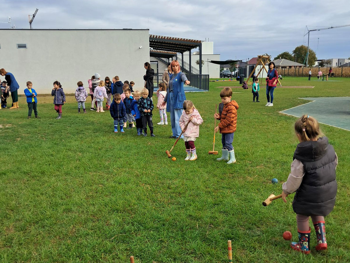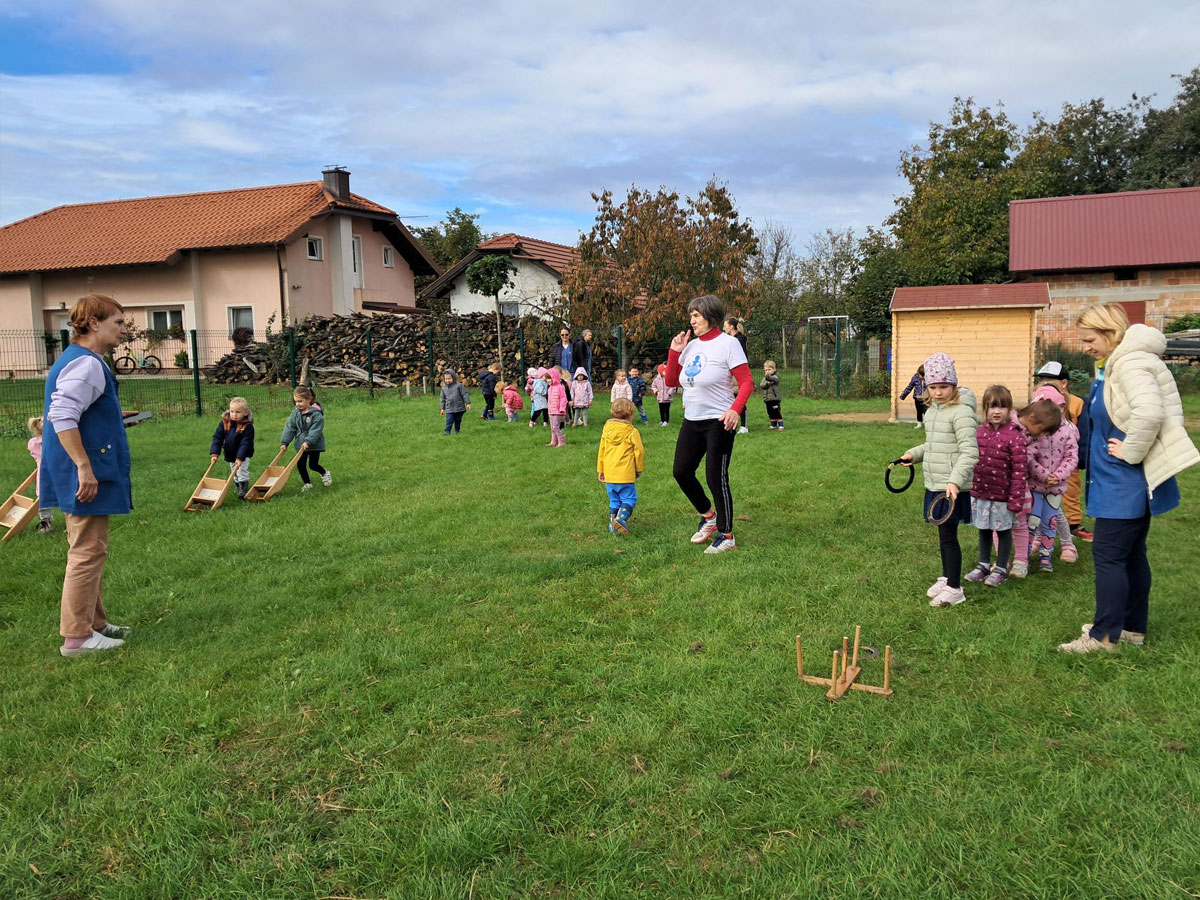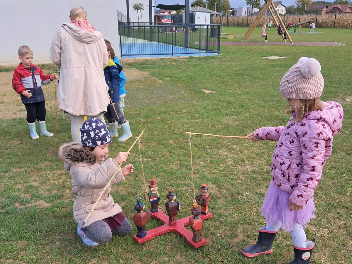 9.10.2025. u Dječji vrtić Medenjak stigle su posebne gošće iz Društva naša djeca. Jadranka Lakuš i Marija Čižmek pripremile su dječje tradicijske igre u dvorištu vrtića pri čemu su im pomagale odgojiteljice centralnog objekta Medenjak.